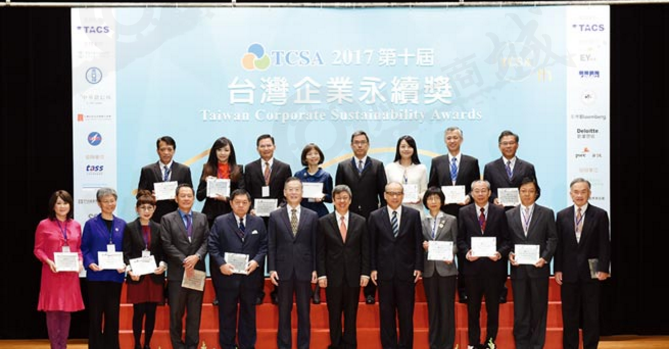 臺灣企業永續學院主辦的2017年第10屆臺灣企業永續獎頒獎典禮于23日隆重登場,獲獎企業多屬國內各產業別極具聲望之標竿企業,67家推動永續發展卓越的企業獲獎,其年總營業額與我國2016年GDP比值53%,彰顯《臺灣企業永續獎》在企業心中之份量及影響力。