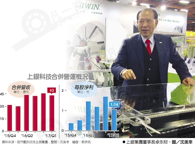 工具機廠首季財報普遍呈現赤字之際,上銀憑藉上銀滾珠絲桿、上銀直線導軌及機器人三大主力訂單滿載,盡管第1季認列匯兌損失近1.9億元,營收大幅成長彌補匯損部分,EPS倍增至1.04元。4月合并營收締造單月營收新高;上銀第2、3季持續加班趕工,年底前訂單及產能滿載。