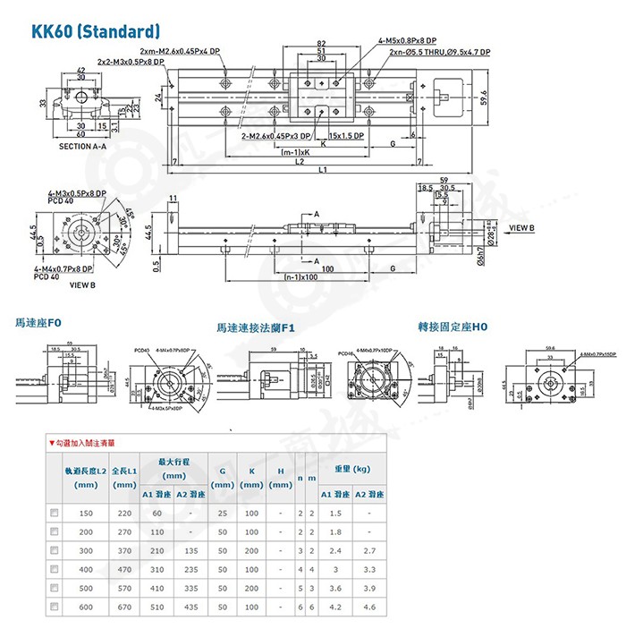 • 線性模組HIWIN模組(工業機器人)KK60系列KK6005C-600A1-F0