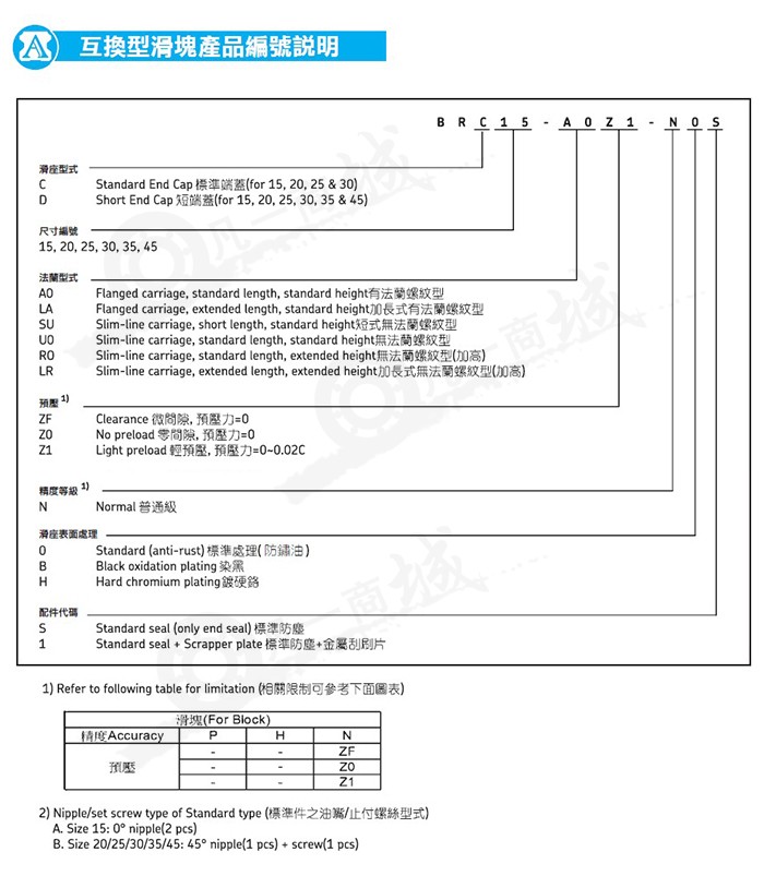 三、ABBA滑塊型號說明