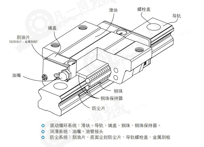 4、有鋼珠保持器設計,在精度允許下具備互換性。
