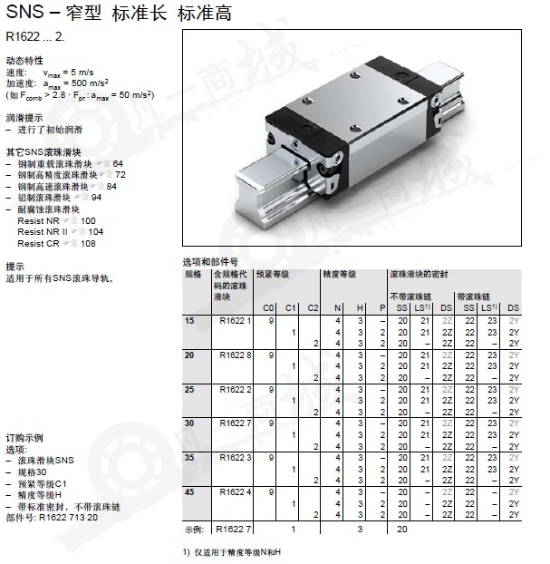 • 直線導(dǎo)軌Rexroth直線導(dǎo)軌SNS窄型系列R16225