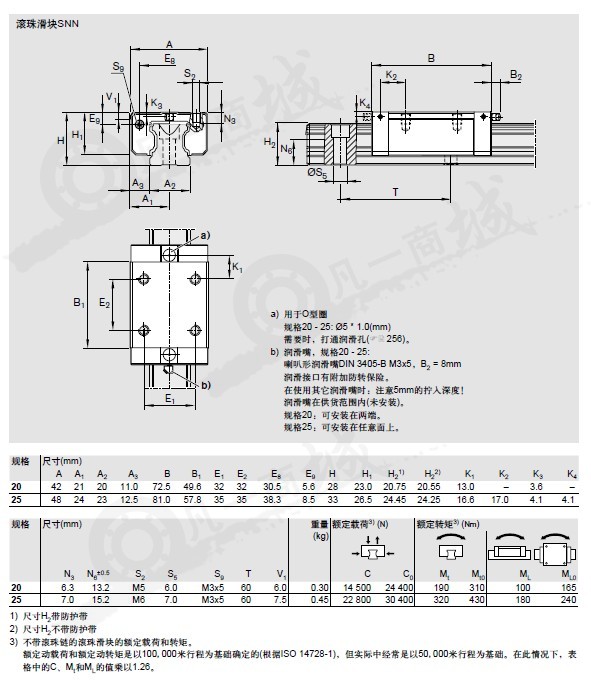 加裝件可以從滾珠滑塊的上面或下面通過螺紋連接安裝1)