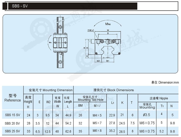 3.安裝簡單 只需通過螺栓安裝,SBC導軌就可以保持高精度,并 在四個方向上承受等量負載。